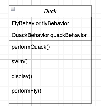 각 오리에는 FlyBehavior 와 QuackBehavior 가 있으며, 각각 나는 행동과 꽥꽥거리는 행동을 위임받습니다.
